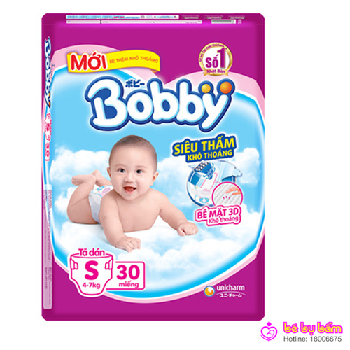 18006675- Làn da của bé vô cùng non nớt và nhạy cảm. Chính vì thế những sản phẩm vệ sinh cho bé trong những năm tháng đầu đời phải mang những đặc điểm thật riêng biệt và tối ưu phù hợp làn da bé cũng như bảo vệ tốt sức khỏe của bé. Đến từ thương hiệu Bobby, sản phẩm Bỉm - tã dán Bobby S30 siêu mỏng 3 miếng sẽ giúp bố mẹ yên tâm về những điều trên. Hệ thun co giãn linh hoạt, bề mặt 3D khô thoáng cùng mặt đáy siêu thấm, siêu thoát ẩm,.. của tã sẽ mang đến cho bé những giờ phút vui chơi cũng như những vận động thật thoải mái và dễ chịu. Bé tự do khám phá thế giới mà không lo bị làm phiền bởi tràn tã hay ngứa rát vì chứng hăm da.