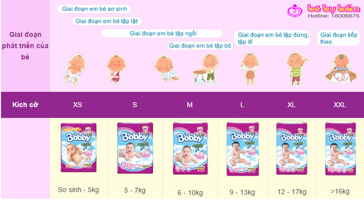 - Hướng dẫn chọn size tã Bobby cho bé.