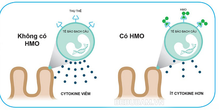 - HMO ngoài vai trò của Prebiotic giúp nuôi dưỡng các vi khuẩn có lợi ở ruột còn giúp ngăn ngừa các mầm bệnh bám vào tế bào giảm nguy cơ nhiễm trùng. Giảm 66% nhiễm trùng đường hô hấp, giảm 52% các bệnh nhiễm trùng nói chung cho trẻ, giảm 36% chứng đau quặn bụng (colic) so với sữa công thức không bổ sung HMO