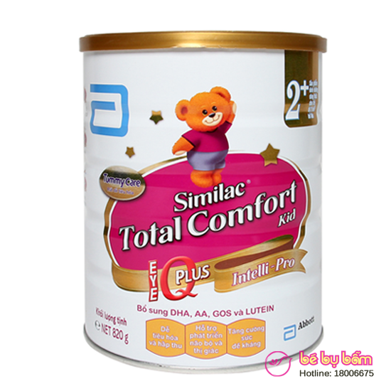 18006675Sữa Similac Total Comfort Kid IQ Plus 2+ 820g là sản phẩm dinh dưỡng công thức dễ tiêu hóa và hấp thu, dùng thay thế bữa ăn phụ, bổ sung cho chế độ ăn hàng ngày, hỗ trợ sự phát triển các tố chất sức khỏe (não bộ, chiều cao và sức đề kháng) cho trẻ từ 2 tuổi trở lên, trẻ không dung nạp sữa bò hoặc với với các thành phần của sữa bò, kém dung nạp đường lactose gây đầy hơi, tiêu chảy, quấy khóc khi ăn.
