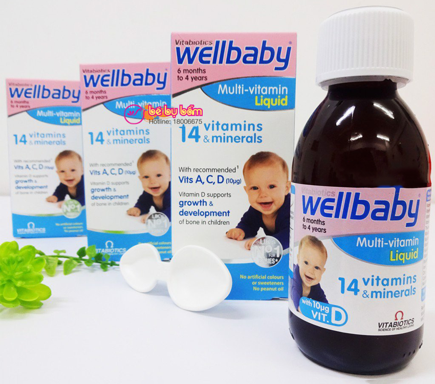 - Vitamin Wellbaby là sự kết hợp cân bằng của 14 loại vitamin và khoáng chất cộng với chiết xuất dầu hạt lanh và mạch nha.